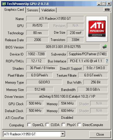 Underclocked Radeon X1950 PRO sold as mainstream card.