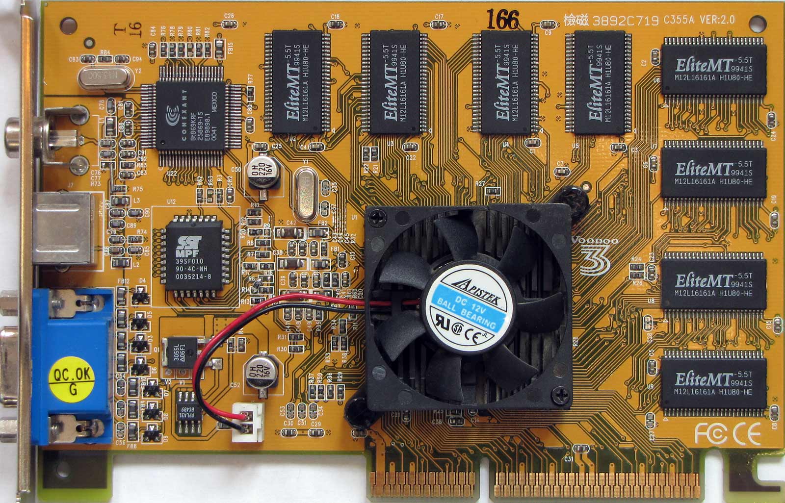Modèle No : 210-0382-004 ..Fabricant: 3dfx ....Modèle Nom : Voodoo3 2000 .....PCB couleur :vert......Autobu :PCI... ..RAM : 16MB....type de carte : Voodoo3 (SG-RAM).